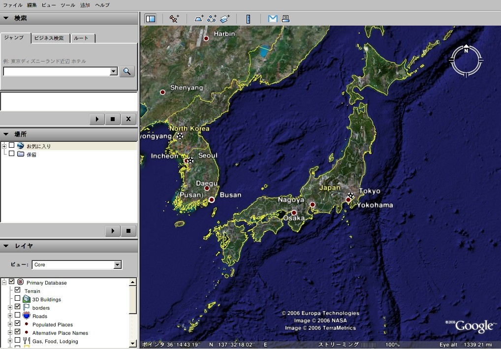 Google Earth Version 4 Betaのメニューを日本語にする方法 ってのがあったので、Linux 版はどうなのかなんと調べてみました。