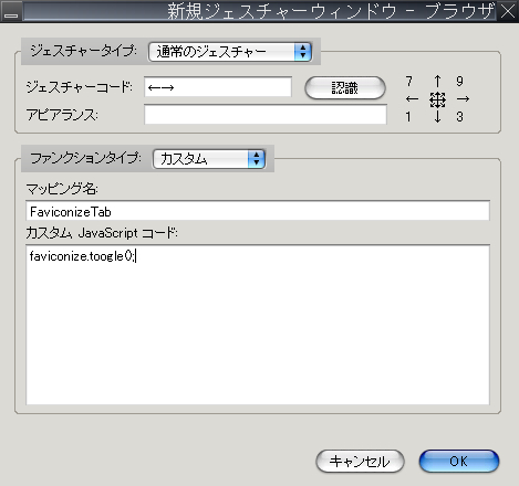 これで、マウスジェスチャを使って FaviconizeTab が実行できるようになりました。