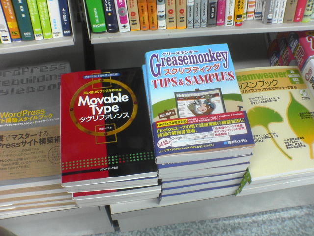 と思っていたのですが、昼過ぎに横浜のヨドバシに行ったらグリモン本が10冊くらい平積みされているのを発見しました。こりゃ嬉しかったのでケータイのカメラで撮影。怪しい人だったと思う。なんかブログコーナー周辺に配置されていました。微妙…。
