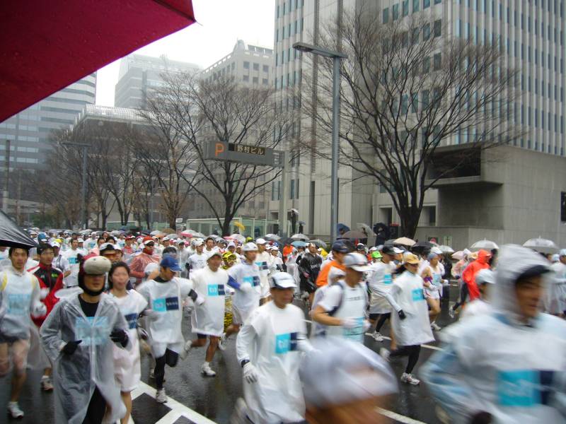 スタートして、目の前を道いっぱいに広がって大群が進んで行くのは壮観です。すごいです。隣りの外人さんがずっとスゴーイって言ってました。こんな状態が20分以上続きます。物凄い寒いのにほんとお疲れさまです。