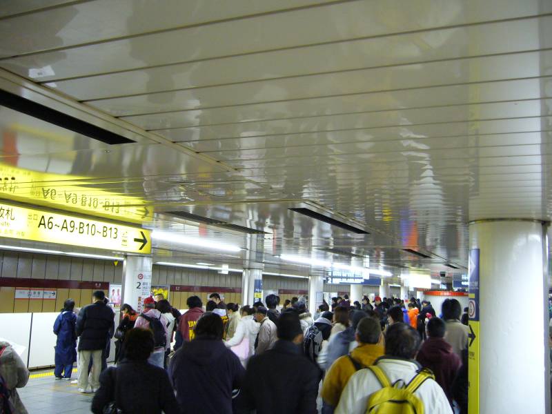 終わったらみんなして丸の内線で移動です。私の場合は友達が10kmで参加していたので、10kmゴール地点である日比谷公園まで移動しました。ラッシュ並みの混み具合で、一般の方にはさぞ迷惑だったかと思います。